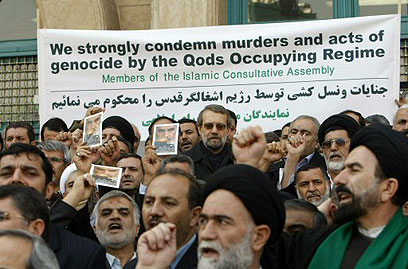 חברי הפרלמנט האיראני בהפגנה בטהרן, היום (צילום: AFP)
