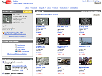 בד בבד, פתח אתמול (ב') דובר צה"ל ערוץ מיוחד באתר שיתוף הוידאו YouTube, אליו מועלים קטעי וידאו רשמיים שצה"ל מעוניין להפיץ.