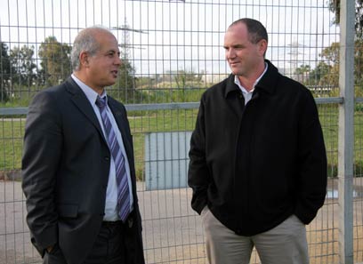 אבי לוזון ומנכ"ל הפועל ב"ש, אבי שכטר (צילום: עוז מועלם)