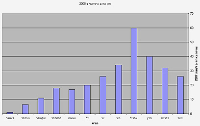 פתיחה סוערת, סוף עצוב - הגידול בשוק הרכב לעומת 2007 (לחצו להגדלה)