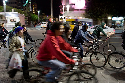מחאת האופניים ברחובות תל אביב, הערב (צילום: אקטיבסטילס)