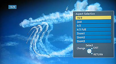 מלבד מצב Just, כולל המסך מצבים נוספים כגון 16:9 טבעי (עם תמיכה ב- NR), שני מצבי 4:3 ושלושה מצבי זום. ניתן כבר לזהות את הסממנים החיוביים שבולטים בהרכב התמונה של הדגם הנבחן: פירוט, חדות ועומק, שימו לב לשובלי העשן שמשאירים אחריהם מטוסי האקרובטיקה. דגם ה- TX-32 LX800 אינו משאיר את הצופה אדיש. הפרטים בתמונה יוצאים החוצה, הפרדת הגוונים טובה גם היא ומאפשרת להבחין בניואנסים שונים, לתמונה יש טעם עשיר, מלא פרטים וצבע.