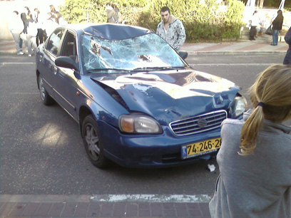הרכב הפוגע לאחר התאונה (צילום: אודי אפוטה)
