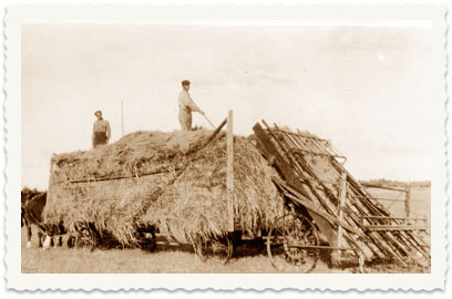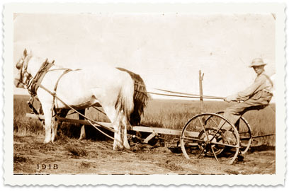 5. 1919, מכונה לאיסוף חציר (פיק-אפ) נגררת סוסים בשדות משפחת קוקוי