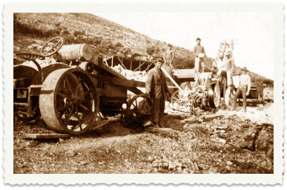 13. בשנותיהם הראשונות של המשפחה בא"י מועסקים הבנים במפעלים שונים המוקמים בארץ. בתצלום: 1924, שאול מפעיל מכבש בבניית כביש בארץ