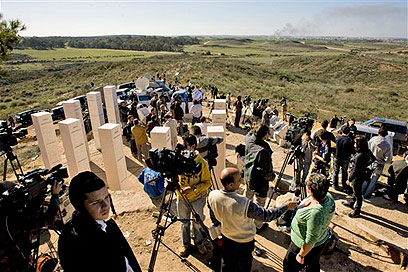 עיתונאים משקיפים מישראל על עזה (צילום: AP)