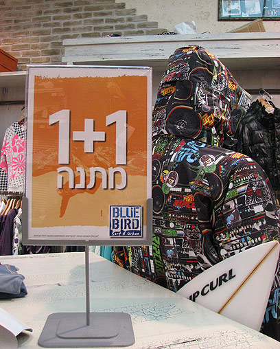 השלטים מחוץ לסניפים הוגנים, אבל פירושם מאכזב. "50% הנחה על הפריט השני בקולקציית החורף 2009", משמע הנחה של 25% על מחיר של שני פריטים.