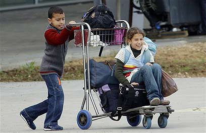 שמחים לעזוב את עזה. ילדים במעבר ארז (צילום: AP)