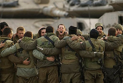 שומרים על מורל גבוה. חיילים בגבול הרצועה (צילום: AP)