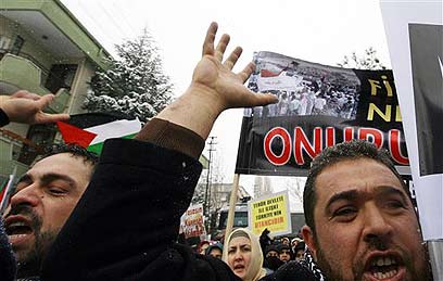 המחאה בטורקיה החלה בתהלוכה של 5,000 איש ברחובות איסטנבול, שכללה הנפת דגלי פלסטין, ושריפת דמויותיהם של ראש הממשלה, אהוד אולמרט, ושל נשיא ארצות הברית, ג'ורג' בוש. לא עזרו לכך התבטאויות בוטות של ראש הממשלה הטורקי, רג'פ טאיפ ארדואן, נגד הפעילות הקרקעית של צה"ל ברצועת עזה, אותה כינה "ברוטאלית".