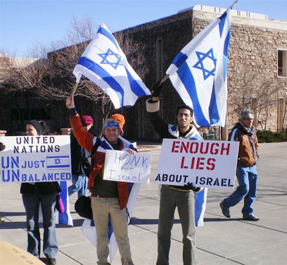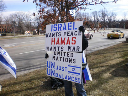 אחד אחד החלו לדבר בגנות ישראל ולכנות אותנו פושעי מלחמה, כמובן שהקול הפלשתינאי לא היסס להשתמש בתמונות של ילדים ונשים בוכים על שלטים. היתה כמעט התלקחות קטנה כשאחד המפגינים התחיל לכנות אותי ואת שאר המפגינים נאצים. אישתו מיהרה להרחיק אותו מאיתנו, מכיוון שהוא עמד ממש מולנו במרחק של סנטימטרים וצעק עלינו, לידי עמדו שני סטודנטים בעלי מבנה גוף גדול, שכבר ראיתי שאוטוטו היו מתחילים בתגרה המונית. לבסוף דחפתי את הסטודנטים מהצד שלנו צעד אחורנית.