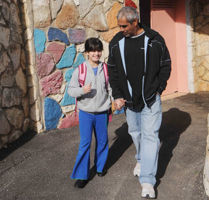 הרצל טלקר אוסף את בתו צליל (צילום: אביהו שפירא)