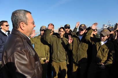 ברק עם חיילים, היום באשדוד (צילום: אריאל חרמוני, משרד הביטחון)