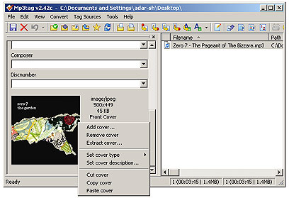 אפשר לחלץ תמונת עטיפה השמורה על קובץ mp3 מסויים באמצעות לחיצה על Extract Cover, לשמור במחשב ולהעביר לקבצים אחרים אם רוצים.