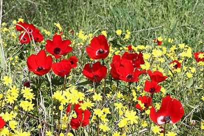 פריחה בצהוב ואדום - כלניות וסביונים