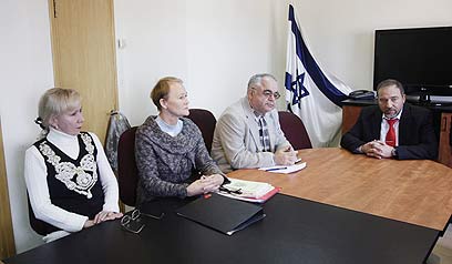 יו"ר ישראל ביתנו ונציגי המוסלמים שעלו מרוסיה (צילום: גיל יוחנן)