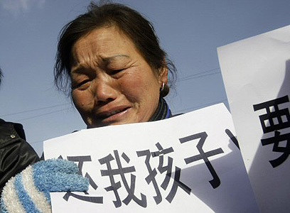 "החזירו את בני" - מפגינה מול בית המשפט בסין, היום (צילום: רויטרס)