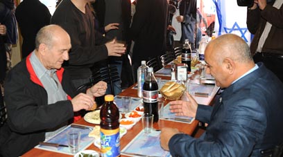 תמונת הניצחון: אולמרט ניגב חומוס בשדרות