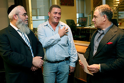 מימין: עידן עופר, יובל קדוש, אביה של עמית ומנכ"ל עזר מציון, הרב חנניה צ'לוק (צילום: אילן ספירא)