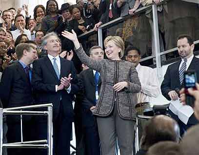להתראות כוחנות, שלום דיפלומטיה? הילרי קלינטון הגיעה היום (ה') למקום עבודתה החדש במשרד החוץ האמריקני. באולם הכניסה המתינו למזכירת המדינה ה-67 בתולדות ארצות-הברית כאלף מעובדי המשרד, הריעו לה ולחצו את ידה.