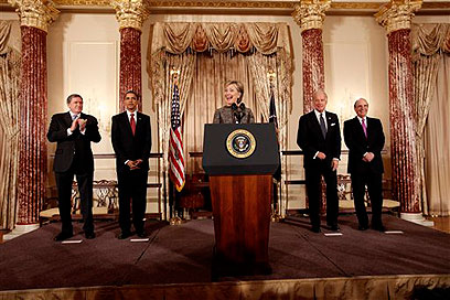 דרך חדשה. נשיא ארה"ב הנכנס, ברק אובמה, סימן אמש (יום ה') את מחויבותו לשלום במזרח התיכון. "המדיניות של הממשל שלי תהיה לשאוף לשלום בר-קיימא בין ישראל והפלסטינים באופן אקטיבי ואגרסיבי, כמו גם בין ישראל ושכנותיה הערביות", אמר בהופעה משותפת עם מזכירת המדינה, הילרי קלינטון, בשעה שהציגו את השליח למזרח התיכון, ג'ורג' מיטשל.