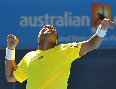 צונגה חוגג מול סלע. ההגשות שלו עשו את ההבדל (צילום: AFP)