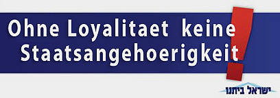 מכרזות הבחירות של מרצ - 'בלי נאמנות אין אזרחות', סיסמת ישראל ביתנו, בגרמנית