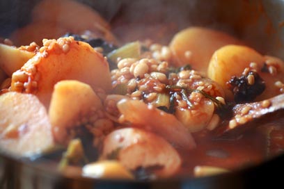 לפני שבוע הכנתי את המתכון שלי לחמין, לצד הטבית. לא היה לי מקום בתנור ולכן הנחתי אותו על הכיריים (כמו הפלטה החשמלית, שברבות הימים החליפה את תנורו של האופה גם אצל סבתא שלי). יודעות הדבר במשפחה צקצקו בשפתיים ואמרו שיצא נהדר. הנה המתכון - בתקווה שגם לכם יצא ילד טוב וממושמע. אם לא - הפיקו לקחים (עוד נוזלים, פחות נוזלים, עוד מלח, פחות מלח, על הכיריים, בתוך התנור וכו') - ונסו עוד פעם. החורף האמיתי ממילא עוד לא הגיע.