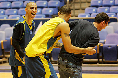 ארויו וסימונס משתעשעים עם עמי ביטון (צילום: עוז מועלם)