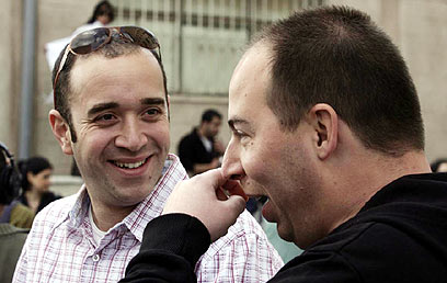 הלר ומנשה בהפגנת הערוץ בירושלים. מאות עובדים לקחו חלק