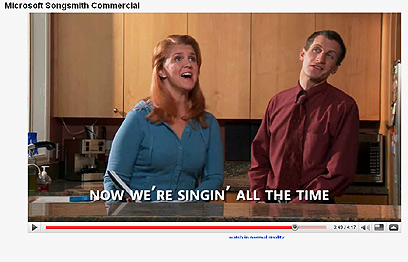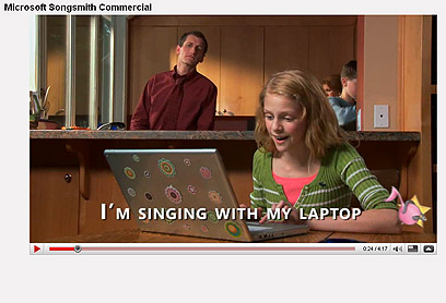 במהלך הפרסומת לוקח האב הנלהב את המחשב של ביתו הקטנה (למרבה האירוניה, מדובר במחשב של חברת אפל, שהלוגו שלו מכוסה במדבקה), ומסתובב איתו ברחבי העיר, תוך כדי הדבקת הסביבה הקרובה אליו בהתלהבות מהתוכנה. "תודות ל-Songsmith אנחנו שרים כל הזמן", שרים ההורים בסוף הפרסומת. עם זאת, מפרסמת מיקרוסופט הבהרה בעמוד הפרסומת: "אנחנו לא מבטיחים שהתוכנה באמת תגרום לכל הבית שלכם לשיר".