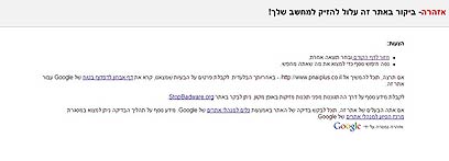 בשעות אחר הצהריים היום (ש') חוו משתמשי מנוע החיפוש הפופולרי בעולם תקלה מוזרה: כל אתר המופיע בתוצאות החיפוש, נמצא תחת אזהרה כי "אתר זה עלול להזיק למחשב שלך". מקורה של אזהרה זו הוא במנגנון ייעוץ האתרים של גוגל, אשר נועד להתריע על אתרים המזוהים כמסוכנים - אתרי פישינג (דליית פרטים), גניבת זהות, אתרים המפיצים וירוסים או ספאם וכיוצא באלה.