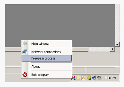 הקלקה ימנית על האייקון במגשית המשימות, בפינה התחתונה של החלון, ובחירה ב-Freeze A Process, תוביל אותנו לחלון שמדווח על התוכנות הפועלות ברקע. הקלקה על תוכנה ולחיצה על כפתור ה-Freeze תקפיא אותה, כך שהיא לא תבזבז משאבים עד ש"תופשר" מחדש.