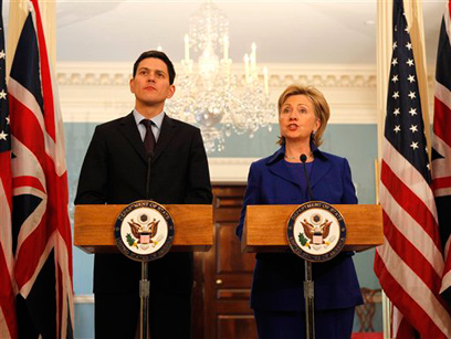 שר החוץ הבריטי מיליבנד אמר כי נכונותו של הממשל האמריקני לפתוח בשיחות עם טהרן, מספקת "מימד חדש" למאמצים הבינלאומיים לבלימת פרוייקט הגרעין האיראני."זה בהחלט חיובי שממשל אובמה שוקל גישות חדשות ביחס לאיראן. אלו כוללות דיאלוג רשמי ישיר ומינוי של נציב חדש שיעסוק בנושא", אמר בתום פגישה ראשונה עם מזכירת המדינה החדשה.