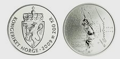 הבנק המרכזי של נורבגיה החליט לכבד את זכרו של חתן פרס נובל, הסופר קנוט האמסון, בהשקת מטבע חדש עליו מוטבעת דמותו. האנסון נוּדה והוחרם בחייו, לאחר שהואשם בבגידה בשל אהדתו לנאצים, מיד עם סיומה של מלחמת העולם השנייה. בראיון לסוכנות הידיעות הצרפתית, AFP, אמר מנהל הבנק המרכזי של נורבגיה, ליף וגום: "זהו הסופר, שאנו מכבדים". ערכו הנומינאלי של המטבע יהיה 200 קרונות (28.9 דולר) אך מחירו יהיה 450 קרונות.