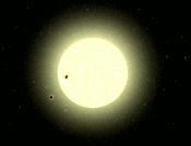 אנימציה שמראה איך פלנטה סובבת סביב כוכב ומסתירה חלק ממנו (באדיבות סוכנות החלל האירופאית)