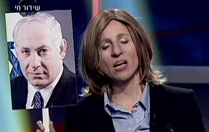 דמותה של לבני ב"ארץ נהדרת". כלום חוץ מלרדת על ביבי (צילומים: ערוץ 2)