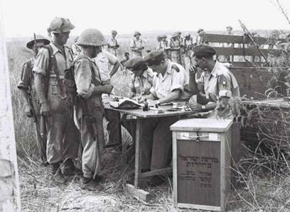 חיילים מצביעים בשדה ב-1951 (צילום: הוגו מנדלסון, לע"מ)
