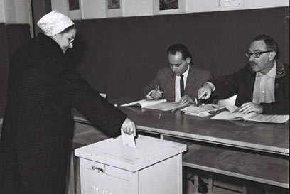 אשה מצביעה בירושלים ב-1965 (צילום: משה פרידן, לע"מ)