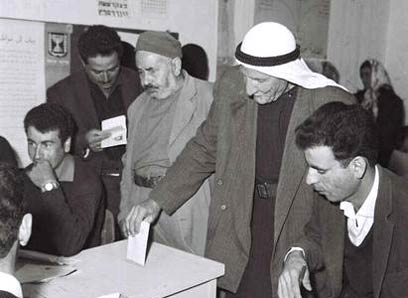 מצביעים באבו-גוש ב-1965 (צילום: משה פרידן, לע"מ)