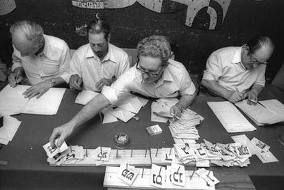 סופרים קולות בבחירות ב-1977 (צילום: יעקב סער, לע"מ)