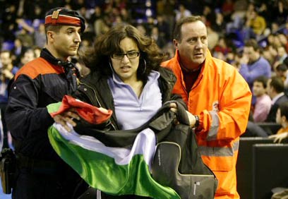 מחאה בברצלונה: אוהדים פרצו עם דגלי פלסטין