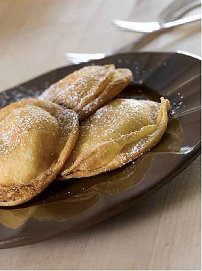 חם, פריך, עם גבינה שנמסה בפה: רביולי מתוק לקינוח, ממולא בגבינת ריקוטה מבושמת בקליפת לימון ומטוגן לפני ההגשה