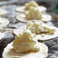 - מניחים כפית קטנה של מלית גבינה במרכז עשרה עיגולים. מכסים כל אחד מהם בעיגול אחר (כמו סנדוויץ(' ומהדקים היטב את השוליים ביחד לאטימה.