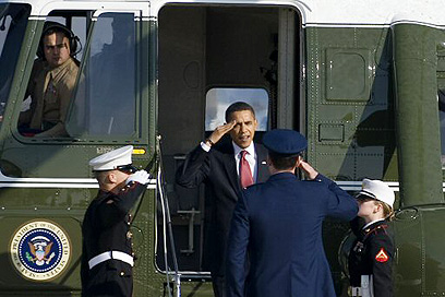 המפקד העליון של ארה"ב מצדיע בצאתו לביקור באינדיאנה (צילום: AFP)