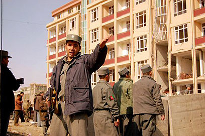 שוטר מחוץ לבניין משרד המשפטים בקאבול (צילום: AFP)