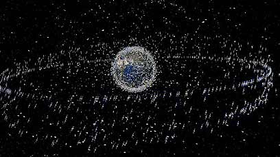 כך נראית חגורת הלוויינים, המקיפה את כדור הארץ. צפופה ומלאה באשפה. הדמיית מחשב של סוכנות החלל האירופית (צילום: AFP)