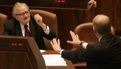 השר איתן ורה"מ אולמרט במליאת הכנסת (צילום: חיים צח)