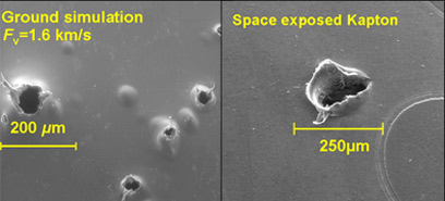 הנזק הנוצר עקב פגיעת פסולת חללית מדומה (משמאל) דומה לנזק שנוצר פגיעת פסולת בחלל (מימין) (צילום: באדיבות פרופ' נעם אליעז)