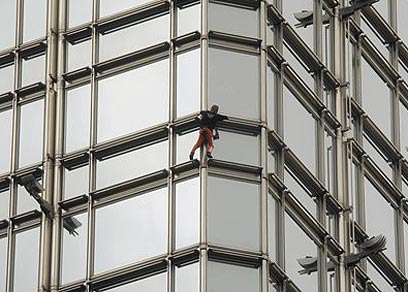 "ספיידרמן הצרפתי" מטפס על מגדל "צ'ונג קונג סנטר" (צילום: AP)